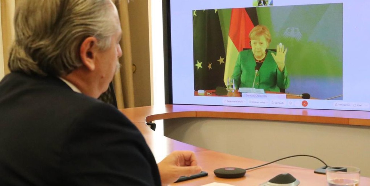 El presidente Alberto Fernández dialogó hoy con la canciller alemana Angela Merkel, y confirmó su apoyo en el marco de la negociación del país con el Fondo Monetario Internacional (FMI).