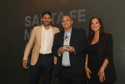 Uno de los momentos destacados de la noche, fue cuando recibió el premio Daniel Di Lena, vicepresidente Ejecutivo de la Lotería de Santa Fe, en representación de Copa Santa Fe.