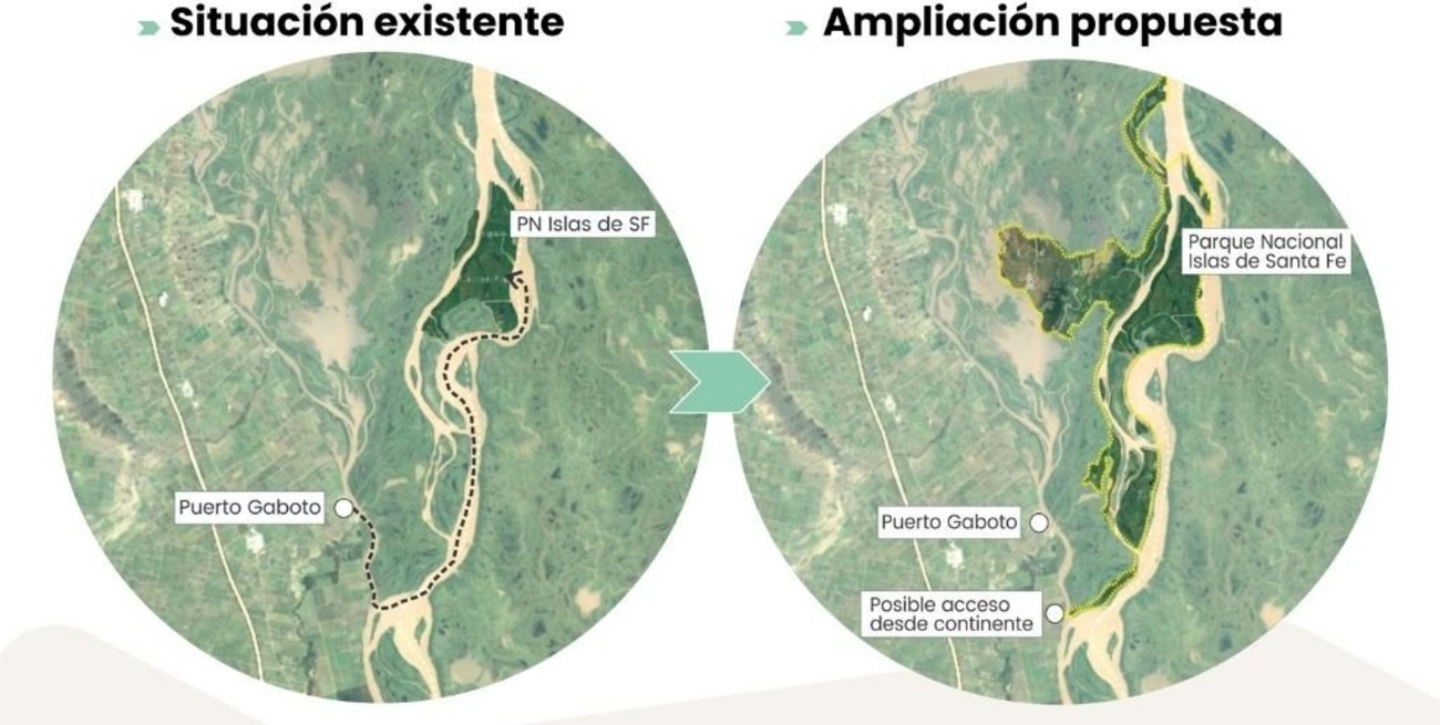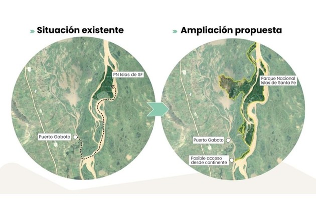 El gráfico del ministerio de Ambiente santafesino con el parque actual y la extensión prevista para lo cual es imprescindible que la provincia transfiera dominios al gobierno nacional.El gráfico del ministerio de Ambiente santafesino con el parque actual y la extensión prevista para lo cual es imprescindible que la provincia transfiera dominios al gobierno nacional.