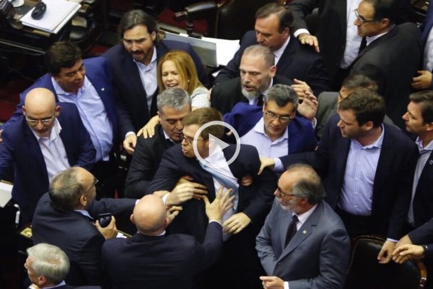 Diputados del oficialismo y la oposición se enfrentaron duramente este miércoles durante la discusión por el proyecto de ley de presupuesto al punto que hubo gritos e intentos de golpes de puño entre los legisladores a raíz de los incidentes provocados por activistas en las calles adyacentes al Congreso.