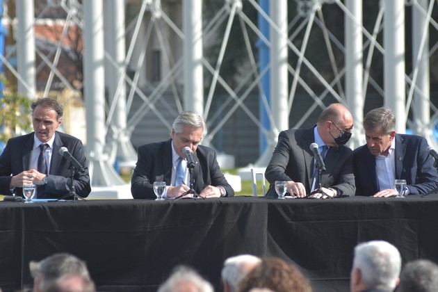 El presidente de la Nación, Alberto Fernández, participó junto al gobernador Omar Perotti, de un acto en el que se celebró el inicio de las obras de ampliación de las plantas potabilizadoras de agua de las ciudades de Santa Fe y Granadero Baigorria.