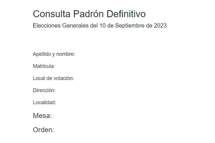 Una vez realizado el trámite, el sistema devuelve los datos personales y el lugar de votación: nombre de escuela, dirección y número de mesa. Ese dato será vital para conocer el resultado en detalle.