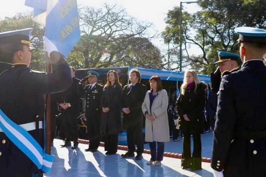 El presidente Javier Milei encabezó este martes el homenaje a los Policías Federales Caídos en el Cumplimiento del Deber junto a su vicepresidenta Victoria Villarruel y a la ministra de Seguridad, Patricia Bullrich.