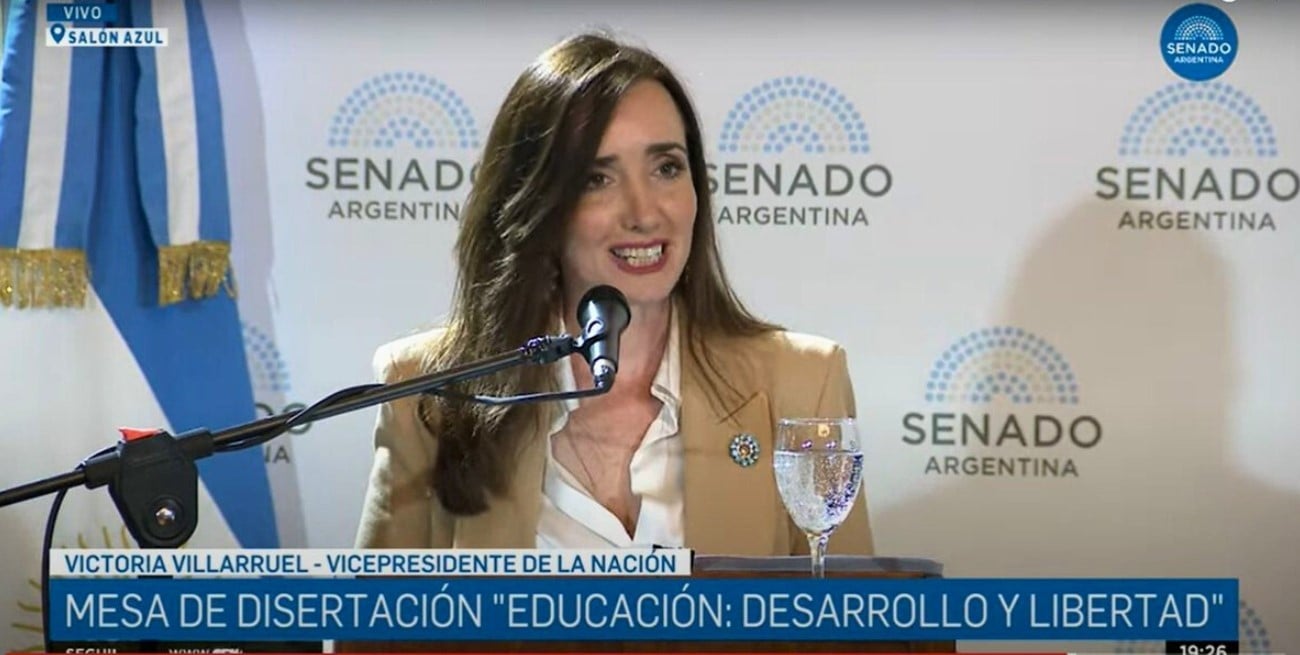 La vicepresidenta y titular de la Cámara alta encabezó una actividad por el Día del Profesor. Apuntó a una "oligarquía universitaria" que "penetra la mente de los estudiantes". Además, defendió la política de equilibrio fiscal de la administración libertaria.