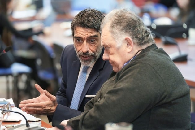 Rodolfo Tailhade, junto a Eduardo Valdés, en una reunión de la comisión. Crédito: NA
