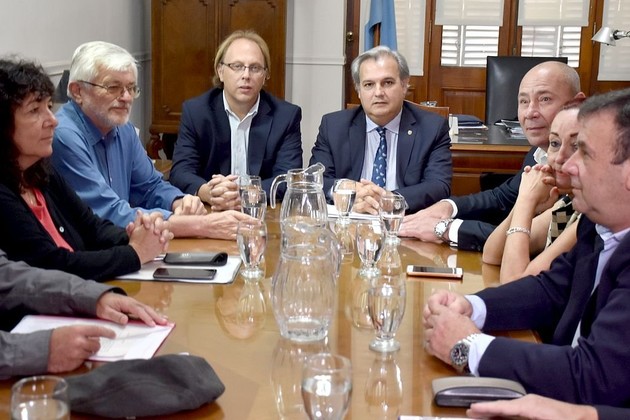 En tanto, en la sede del Ministerio de Trabajo, su titular, Julio Genesini, y la de Educación, Claudia Balagué, recibieron a los gremios docentes.