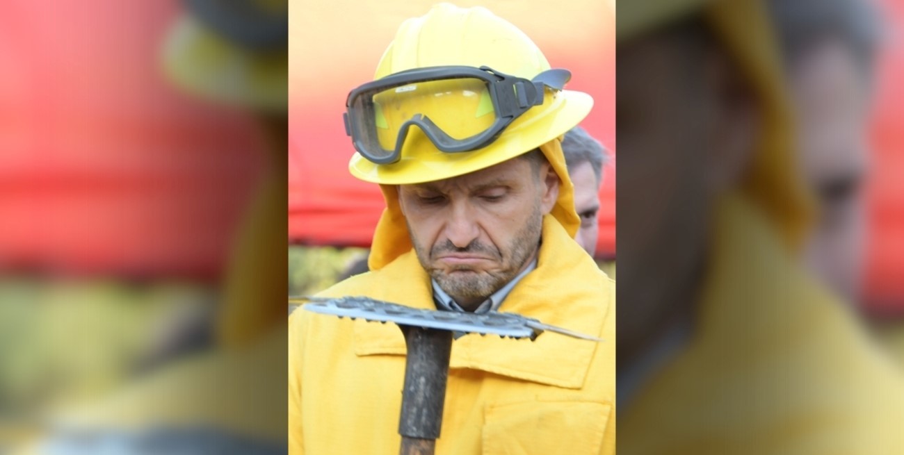 El gobernador se probó un mameluco junto a sus ministros en una muestra en Plaza de Mayo. Hubo fotos, bromas y reconocimiento a los equipos de rescate.