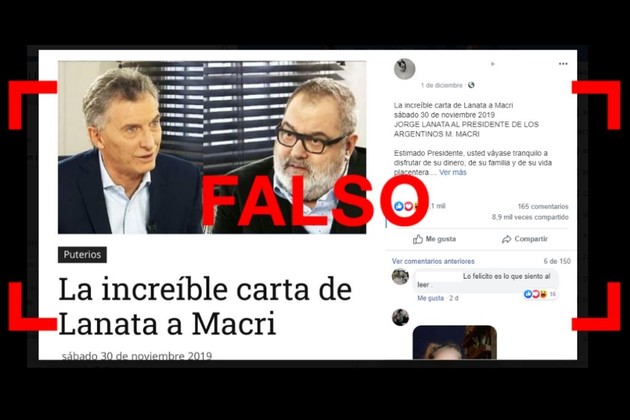 Circula por redes sociales y WhatsApp una carta pública dirigida al presidente de la Nación, Mauricio Macri, supuestamente firmada por el periodista Jorge Lanata. Sin embargo, Reverso pudo confirmar que esto es falso.