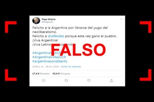 Es falso el tuit de Mujica felicitando a Alberto Fernández por el triunfo