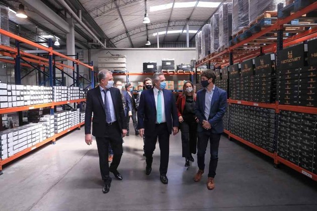 El primer mandatario encabezó ayer al mediodía el anuncio del nuevo programa de Precios Cuidados para la Construcción en la planta de la empresa de grifería y accesorios Hidromet, en la localidad bonaerense de San Fernando, junto al gobernador Axel Kicillof y el ministro de Desarrollo Productivo, Matías Kulfas.