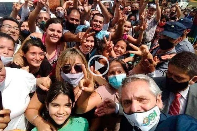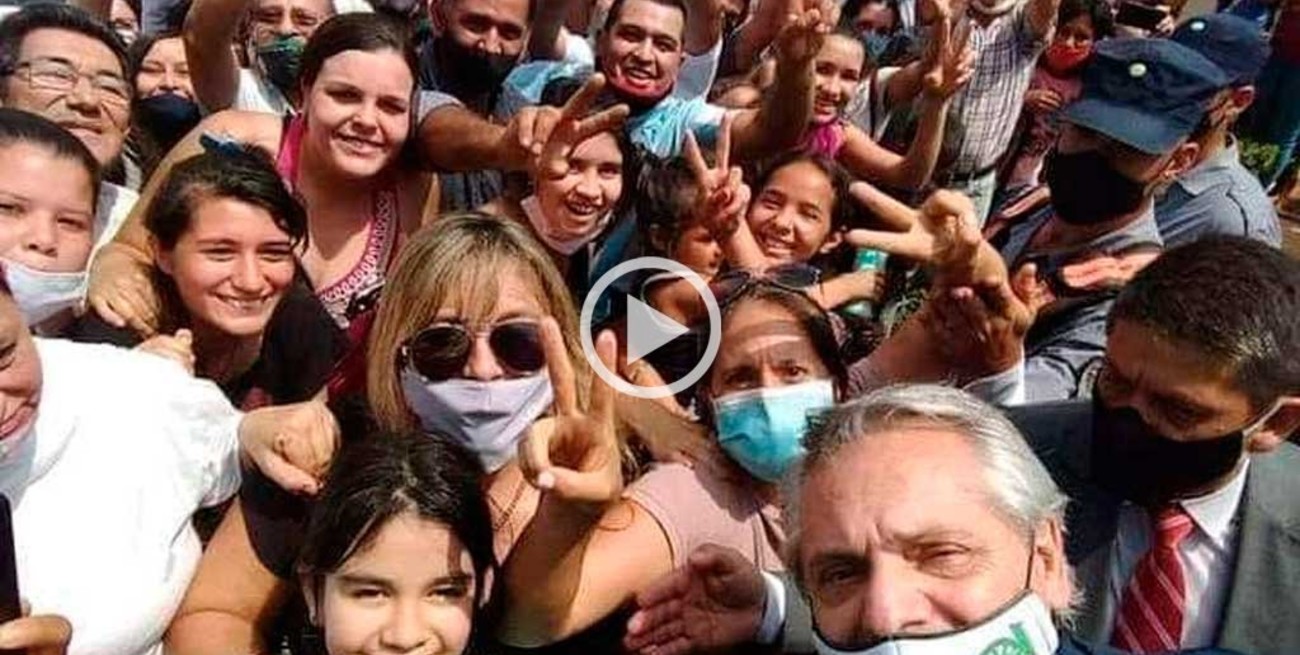 En el marco de la visita oficial a Misiones, Fernández también tuvo tiempo de acercarse a los militantes. Lo preocupante es que muchos de ellos no tenían tapabocas, ni tampoco se respetaron las medidas de distanciamiento social.