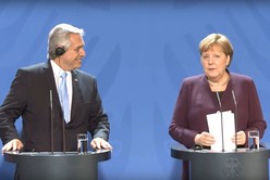 Con fondo azul y banderas de ambos países y de la UE al costado, Merkel expresó “el interés muy grande” de la industria de su país por el acontecer en Argentina y en el Mercosur y la necesidad de ver cómo Berlín puede "apoyar y ayudar" a la situación argentina.