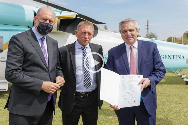 Durante el acto, el Presidente estuvo acompañado por el gobernador de Santa Fe, Omar Perotti; el ministro de Desarrollo Productivo, Matías Kulfas; el intendente local, Horacio Compagnucci; y el presidente de la fábrica de maquinarias Ombu, Orlando Castellani.