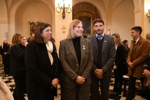 La vicegobernadora Gisela Scaglia y la presidenta de la Cámara de Diputados, Clara García, subieron juntas las escaleras de Casa de Gobierno para sumarse en el Salón Blanco a la reunión del último miércoles de la Junta Provincial de Seguridad. Lo hicieron conversando animadamente sobre temas de la provincia.