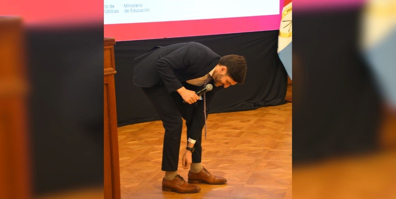 El gobernador Maximiliano Pullaro debió agacharse y acomodarse los pantalones que no llegaban a la parte baja de la pierna en un gesto que no pasó inadvertido para los asistentes e invitados especiales, durante la presentación del proyecto para el edificio de la escuela Brown en el Salón Blanco de Casa de Gobierno. Tampoco fue un gesto más del titular del Poder Ejecutivo Provincial para Manuel Fabatia, el inquieto fotógrafo de El Litoral que estaba en la cobertura del acto. "Me quedaron los pantalones arriba, ahora se usa todo chupín" dijo sonriente el gobernador que luego hizo su discurso.