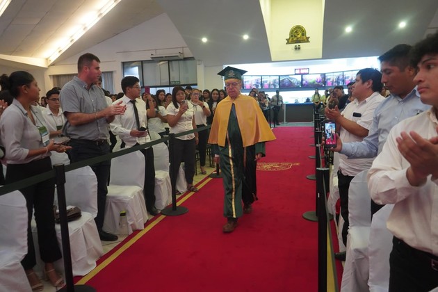 En esta ocasión, el ex ministro de la Corte Suprema de Justicia de Santa Fe recibió el doctorado Honoris Causa en la Universidad de Aquino de Santa Cruz de la Sierra en Bolivia. Además la laudatio la hizo el actual Ministro de Justicia de Bolivia, Ivan Lima quien egresado de la Maestría que el propio Vigo dicta en Magistratura y Derecho Judicial en la Universidad Austral de Buenos Aires