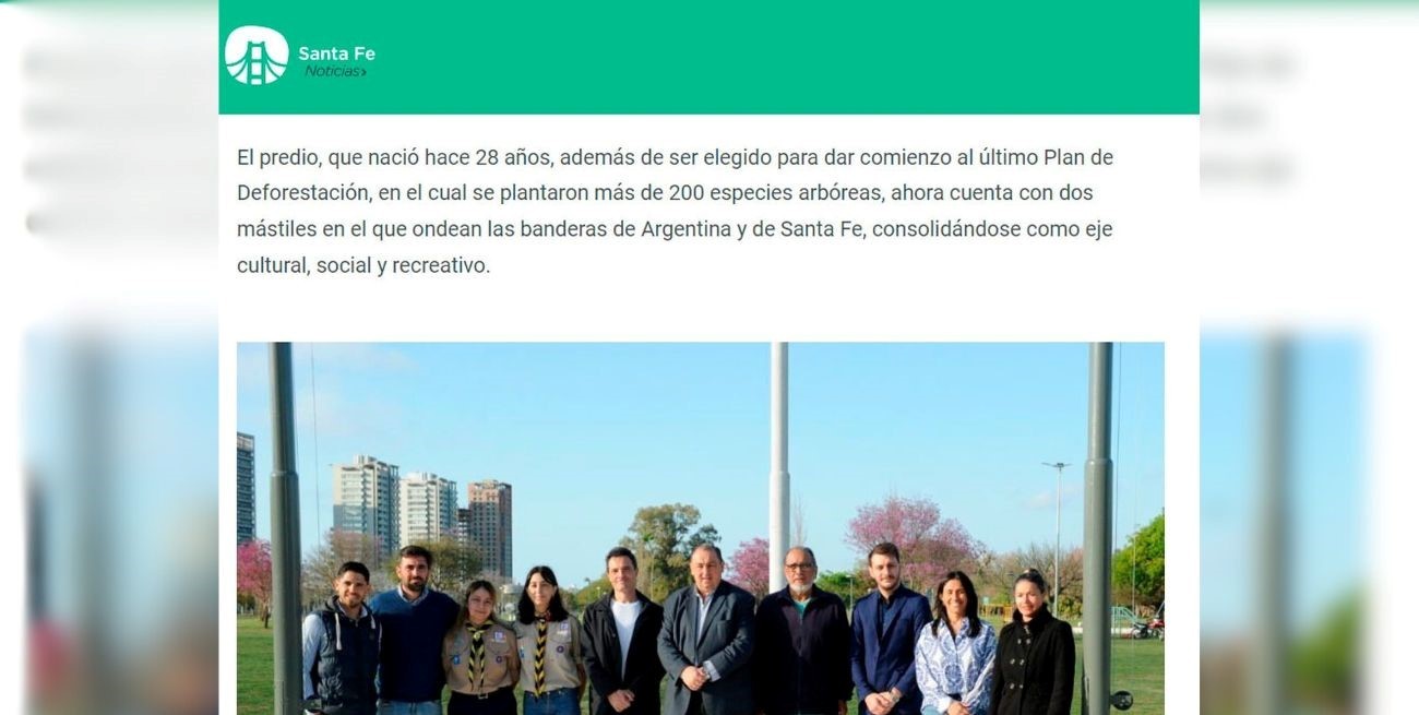 En el marco de un anuncio oficial sobre el Parque Federal, de instalación de dos mástiles en este gran espacio verde de la ciudad de Santa Fe, el municipio habló del cuidado de este tipo de lugares y la necesaria puesta en valor. Sin embargo, no se infirió en un descuido al mencionar que en este parque arrancó el "último Plan de Deforestación". La contradicción quedó evidenciada en la siguiente oración del parte de prensa que indica que por ese programa "se plantaron más de 200 especies arbóreas".
