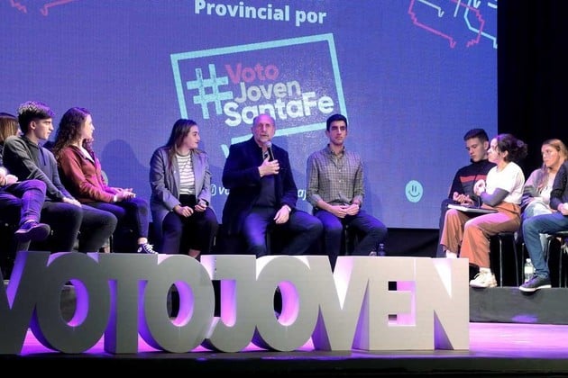 La Sala Lavardén en Rosario fue el escenario del primer encuentro de los varios que realizará el gobernador Omar Perotti para avanzar en la discusión del voto para jóvenes de 16 y 17 años en las elecciones provinciales y municipales. El mandatario con ministros y legisladores provinciales autores de proyectos sobre el tema compartieron la jornada con dirigentes de centros de estudiantes de la zona sur de la provincia.