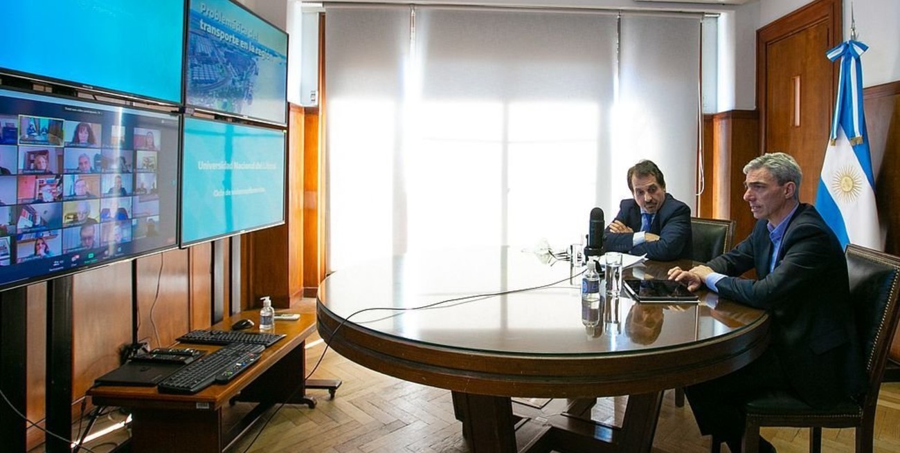 Meoni y su jefe de gabinete, Abel De Manuele, participaron de un conversatorio virtual con la Universidad Nacional del Litoral cuyo rector, Enrique Mammarella, fue quien presentó el tema, las inquietudes y fue coordinando las preguntas del centenar de participantes de la charla.