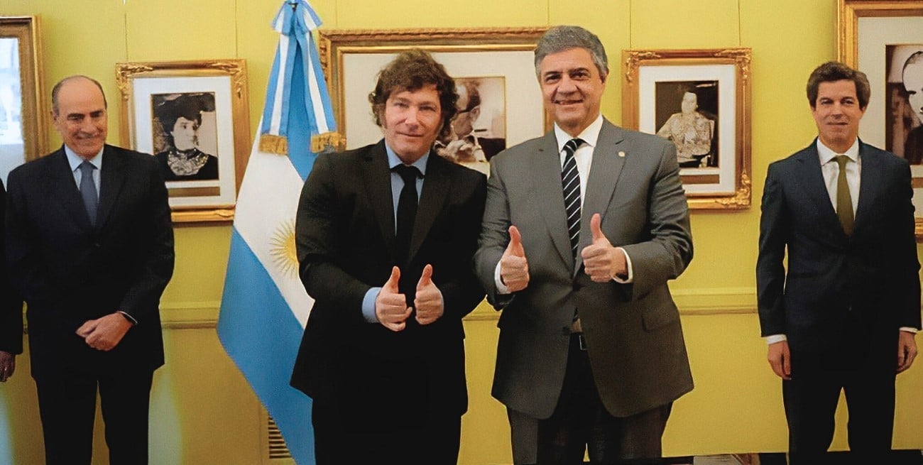 El jefe de Gobierno porteño, Jorge Macri, junto al presidente Javier Milei, tras la firma del acta acuerdo por subsidios nacionales al transporte.
