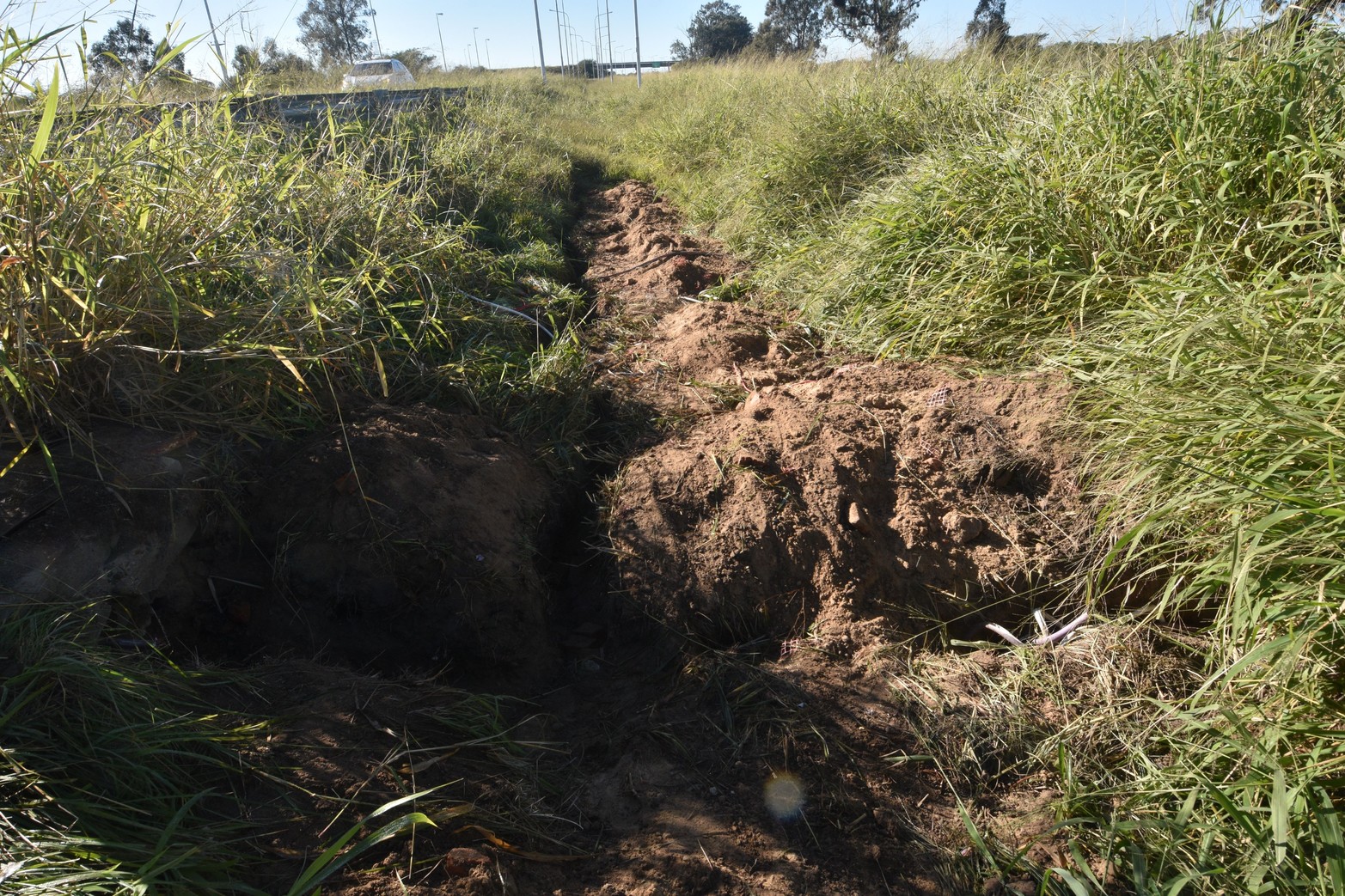 5 / 8 Sigue el vandalismo en la autovía 168. A la altura del viejo atracadero de la balsa robaron cables subterráneos en 10 columnas de luz. Si bien el lugar es monitoreado por cámaras, la altura de las malezas impide su visualización. Foto: Mauricio Garín