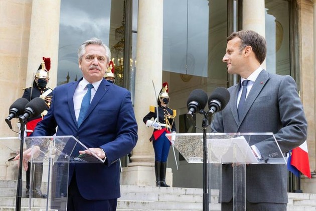 En la declaración conjunta, el mandatario francés indicó la importancia de hablar con Fernández sobre "los compromisos financieros de la Argentina, sobre los cuales el presidente Fernández ha trabajado conmigo".