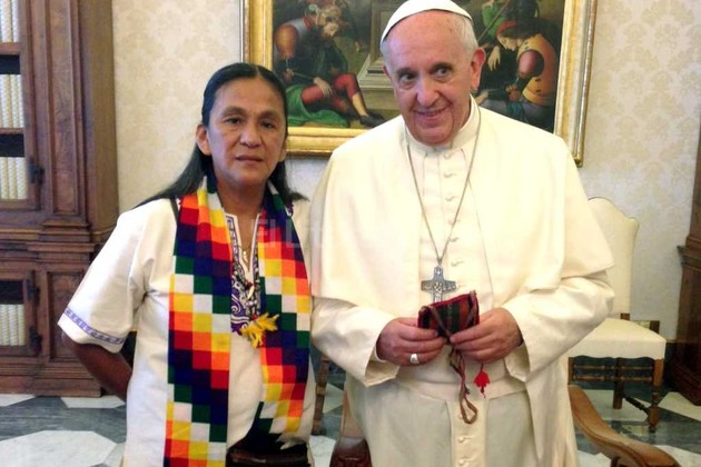 Francisco le regaló un rosario bendecido a Milagro Sala