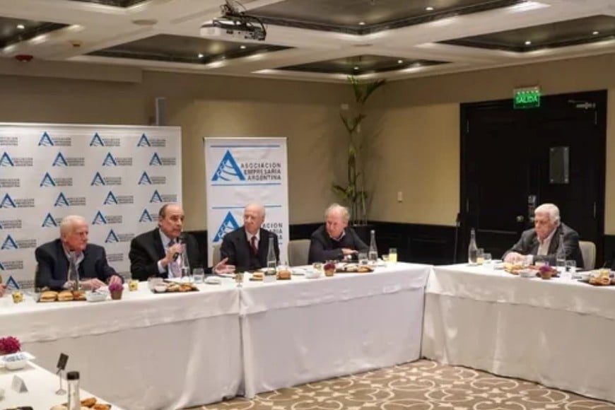 Este martes fue recibido por los integrantes de la Asociación Empresarial Argentina (AEA), que lidera Jaime Campos, y que ya en su momento apoyó la ley Bases y luego del Pacto de Mayo. Drante más de dos horas, conversó con algunos de los dueños de las compañías más grandes de la Argentina, como Luis Pagani, del Grupo Arcor; Paolo Rocca, de Techint; Sebastián Bagó, de Laboratorios Bagó; Federico Braun, de La Anónima; Alberto Hojman, de BGH; Eduardo Elsztain, de IRSA; Pierpaolo Barbieri, de UALÁ, y Alejandro Butti, de Santander Río, entre otros.