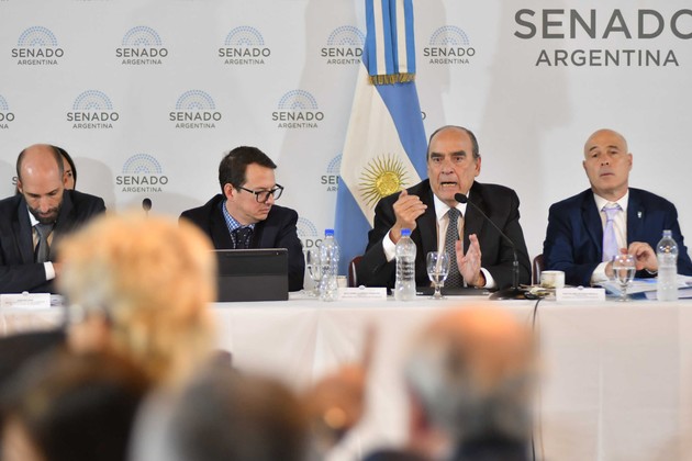 Para defender las iniciativas se presentaron altos funcionarios del Gobierno nacional, encabezados por el ministro del Interior, Guillermo Francos, que estuvo acompañado por el vicejefe de Gabinete, José Rolandi, y el secretario de Hacienda, Carlos Guberman.