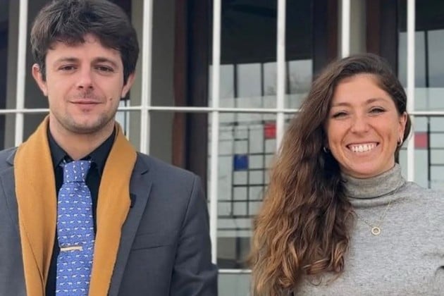 La senadora Sofía Galnares junto a Poleri, intendente de Teodelina.