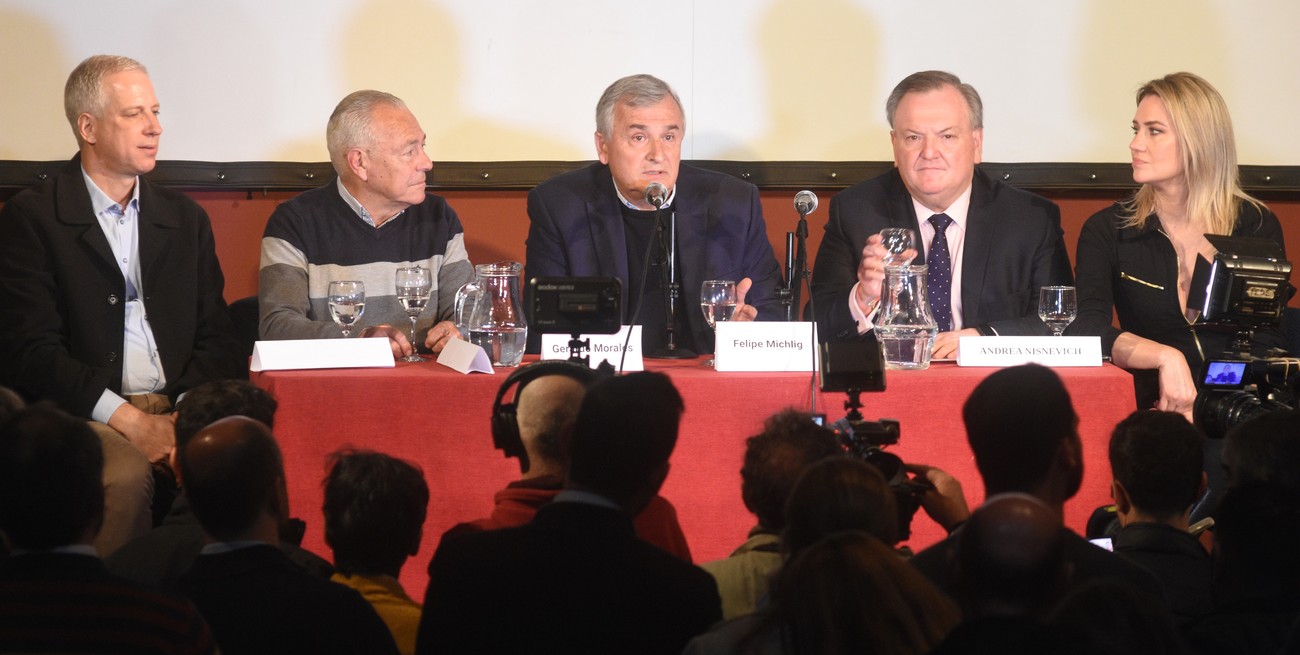 Morales dialogó con la prensa en el marco de una jornada sobre "Planes sociales y asistencialismo". Lo hizo acompañado por los senadores nacionales Carolina Losada y Dionisio Scarpin, el diputado nacional Mario Barletta y el presidente de la UCR santafesina, Felipe Michlig.