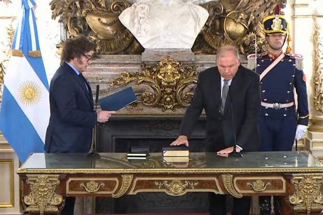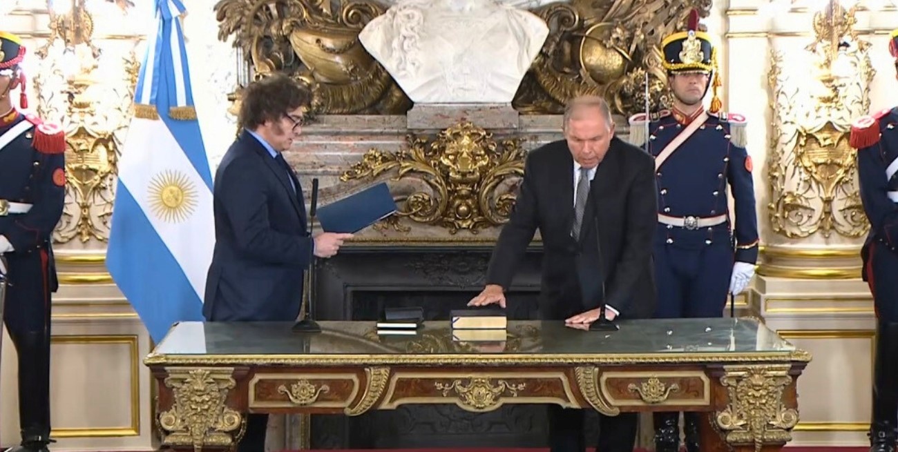 El presidente Javier Milei le tomó juramento como titular del Ministerio de Relaciones Exteriores, Comercio Internacional y Culto, luego del desplazamiento en el cargo de Diana Mondino.