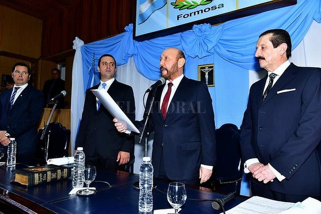 En un acto realizado en el galpón C del paseo costanero de la ciudad capital, Insfrán tomó juramento a los ministros y secretarios de su gabinete que lo acompañaran en su próxima gestión.
