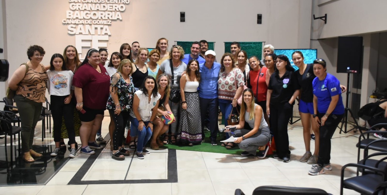 La diputada Gisel Mahmud y el ex entrenador de Las Leonas mantuvieron un encuentro con 50 referentes del deporte de Santa Fe. Más tarde Vigil brindó una charla para 500 personas organizada también por el concejal Paco Garibaldi y Demos.