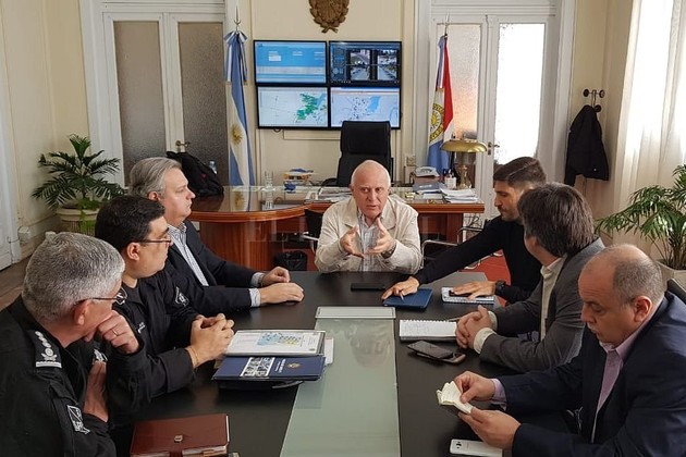 El gobernador Miguel Lifschitz desarrolló su agenda de este sábado a la mañana en el Ministerio de Seguridad de Santa Fe. Encabezó reuniones junto a los ministros de Seguridad Maximiliano Pullaro, y de Gobierno Pablo Farías, con la plana de la Policía de provincia.