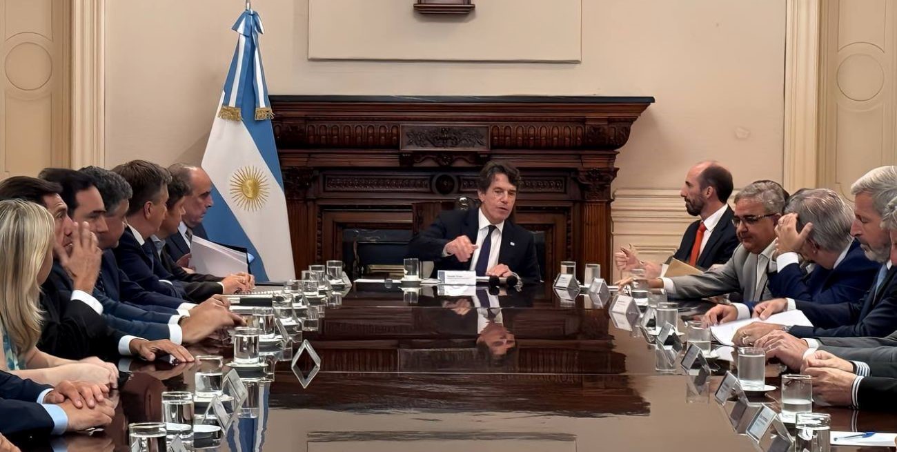 "Fue una reunión muy cordial y positiva, en la que tuvimos una larga conversación. Les presentamos a los gobernadores la versión de la Ley Bases sobre la que había consensos", dijo el responsable de la cartera política. "Decidimos avanzar con todos esos aspectos que tienen consenso parlamentario: declaración de emergencias, facultades delegadas y protección a las grandes inversiones y régimen hidrocarburífero", refirió para apuntar que "la mayoría de los gobernadores estuvo a favor".