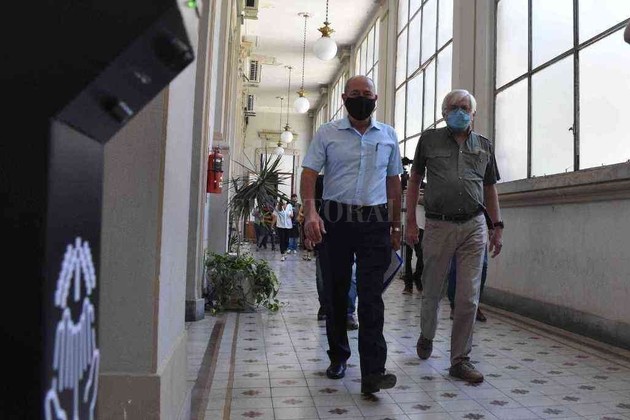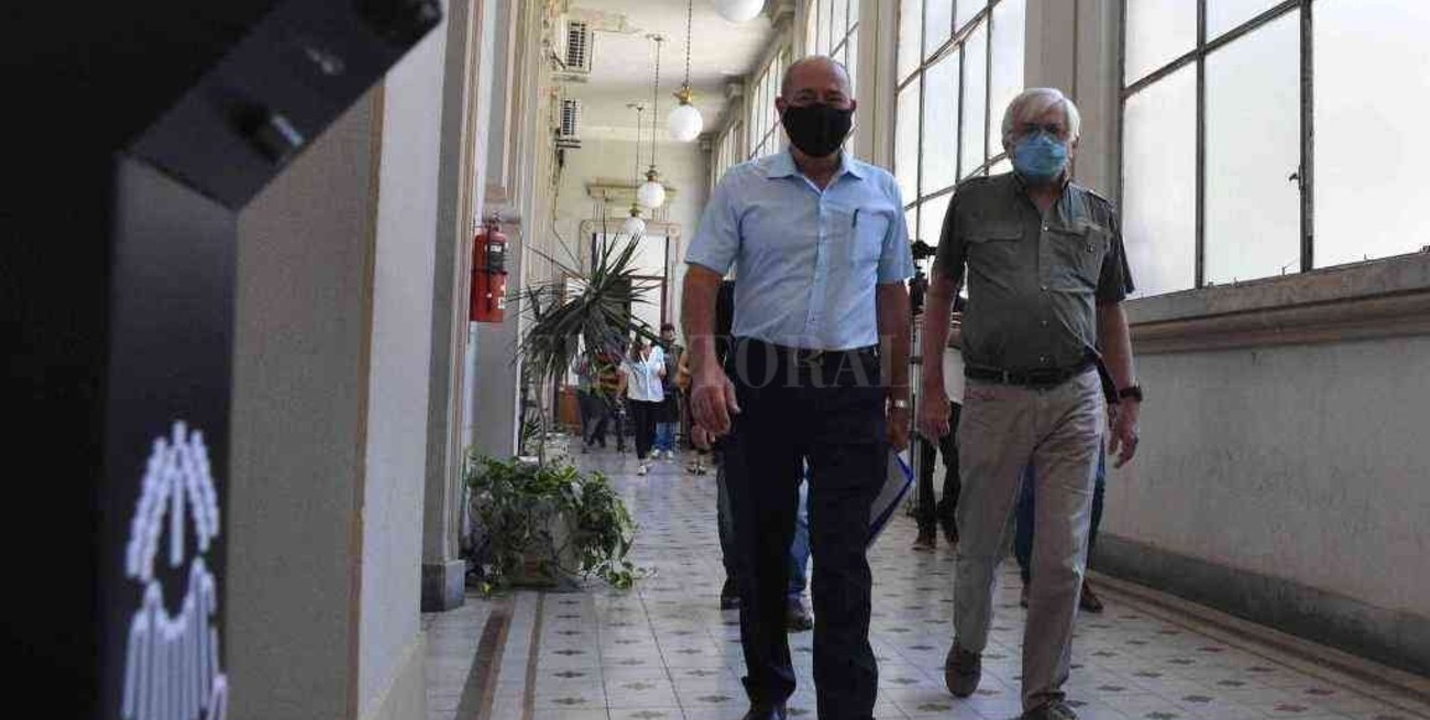 Guillermo Di Salvatore Molina (UPCN) y Hoffmann (ATE) ingresando a una de las varias reuniones paritarias para cerrar acuerdo en 2020.