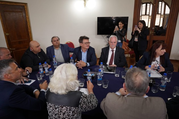 Arena con el fiscal de Estado, Rubén Weder, y el secretario de Gobierno, Oscar Urruty, recibieron a una importante delegación de diputados y previamente mantuvieron un encuentro con los oficialistas Leandro Busato, Luis Rubeo, Matilde Bruera y Cesira Arcando para buscar unificar una posición. Es más, sobre el final, Busatto calificó de importante la reunión y seguir dialogando sobre la cuestión.