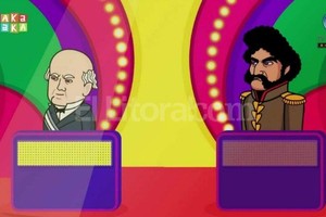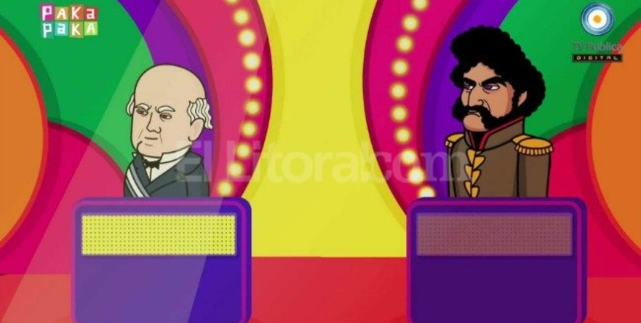 El prócer, nacido en San Juan, aparece en el dibujo animado en un juego de preguntas y respuestas en el que compite con Juan Facundo Quiroga, el caudillo de La Rioja al que Sarmiento fustigó en su libro "Civilización y Barbarie".
