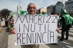 “Plan de lucha para luchar contra el ajuste de Mauricio Macri, Miguel Lifschitz y el Fondo Monetario Internacional”, era una de las leyendas impresas en una de las banderas principales de la columna. “Fuera Macri y el FMI de la educación y del país”; “Sí a la emergencia alimentaria” eran otras de las consignas.
