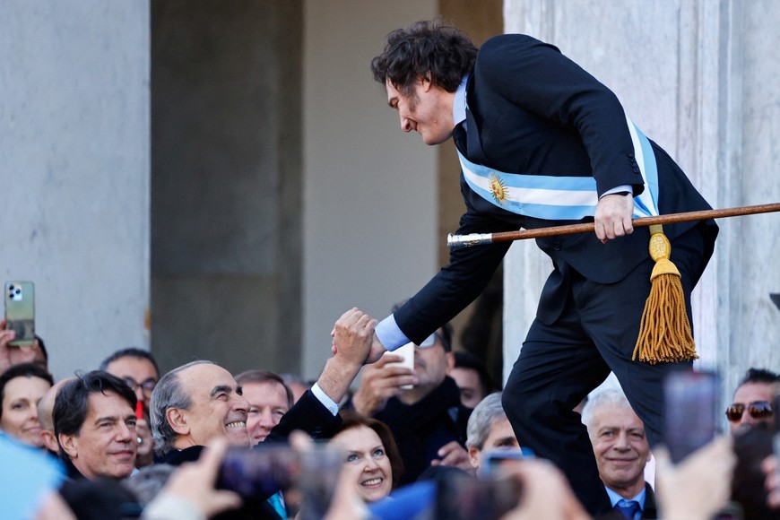 Francos en pleno saludo a Milei, en los actos por el 25 de Mayo. Crédito: Reuters.