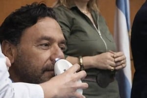 "Venga, Laura, venga", le dijo a Cartuccia, diputada provincial, a quien recibió en el escenario afectuosamente. El gobernador anunció que primero iría ella y luego él. Para ello, en una mesa contigua al estrado, aguardaba una profesional de la salud con el artefacto que recorre las fosas nasales y los monitores correspondientes.