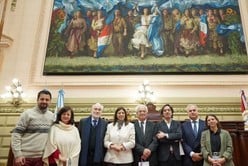 La ocasión también fue aprovechada para reconocer a referentes del Gobierno de la provincia de Santa Fe, de la Municipalidad, de la Universidad Nacional del Litoral y de la facultad de Derecho de esa casa de estudios, sede del histórico evento. Así subieron a recibir los recuerdos el ministro de Educación, José Goity; el intendente Juan Pablo Poletti; Enrique Mammarella y Claudia Levin, respectivamente.
