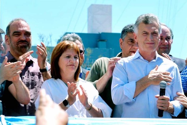 Previo a la frustrada audiencia, el ex mandatario participó de un breve acto político a dos cuadras del juzgado, en el que también hablaron la presidenta del partido PRO, la ex ministra Patricia Bullrich, y el intendente de Dolores, Camilo Etchevarren.