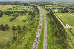 Y agregó: "Son dos millones doscientos mil camiones transitan por la autopista y tenemos momentos en que queda completamente colapsada. Tomamos la determinación de hacer con fondos propios obras que venían relegadas durante años" porque "pudimos tomar criterios de gestión para ordenar y hacer eficiente y pudimos achicar al Estado".