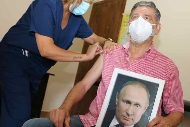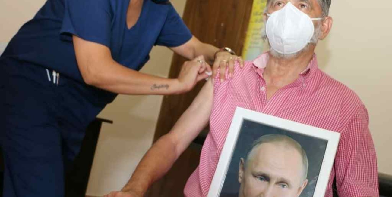 Juan Carlos Gasparini, intendente de la localidad bonaerense de Roque Pérez, eligió una singular manera para comunicar que había sido inoculado con la vacuna Sputnik V contra el coronavirus. El funcionario se mostró con una foto de Putín.