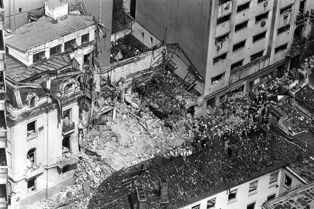 "Mi corazón y el corazón del pueblo de Israel está junto a las familias de las víctimas, entre ellos, los diplomáticos israelíes, sus cónyuges, los fieles trabajadores argentinos de la Embajada y los transeúntes, quienes quedaron atrapados en el lugar en el momento del atentado, y con el pueblo argentino, que sufrió un ataque terrorista tan grave", expresó el funcionario.