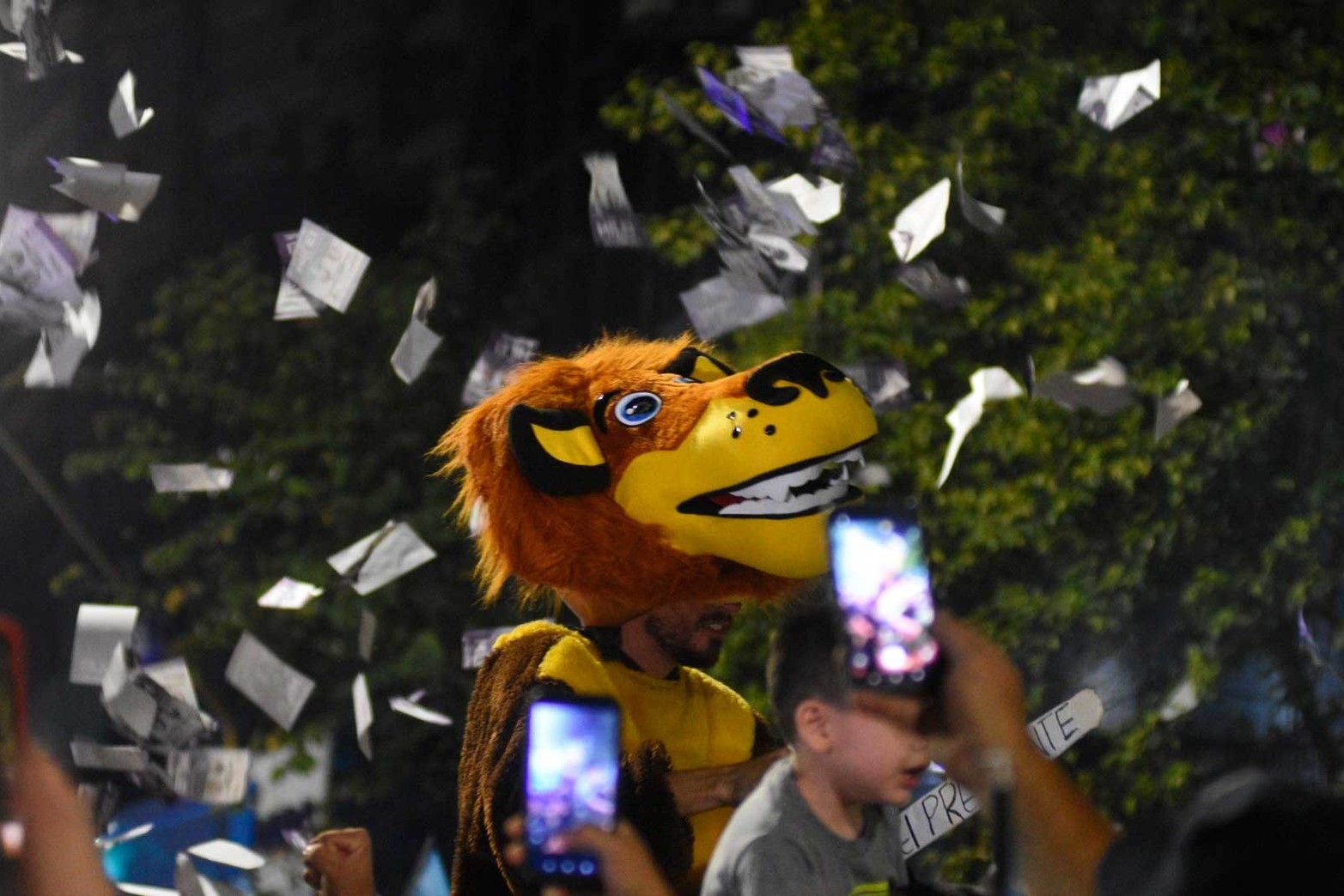 1 / 6 Un león en clara representación a Milei, el color de los festejos en el centro santafesino. Foto: Manuel Fabatía