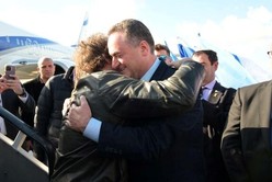 El presidente tuvo un intercambio breve con el canciller israelí al bajar del avión.