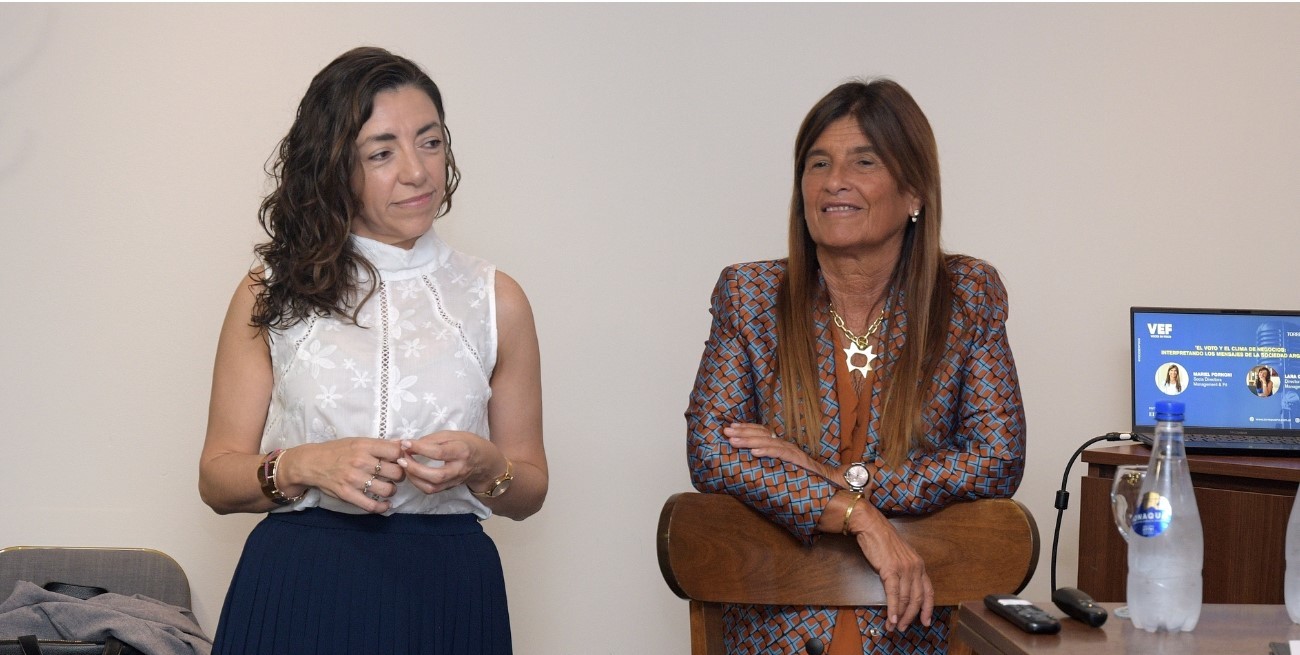 Mariel Fornoni y Lara Goyburu: el voto "pragmático" y no ideológico, el "efecto Trump" y la marcada polarización impactaron en el resultado electoral. Crédito: Guilermo Di Salvatore.